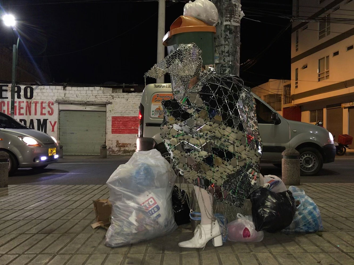 Distanciándome un poco más del Ballet de Schlemmer, en el que los cuerpos teatrales danzan dentro de escenografías abstractas, mi ejército de criaturas espejadas habitan ambientes que no controlan: la calle, la costa del Río de la Plata, la FADU, el páramo colombiano.