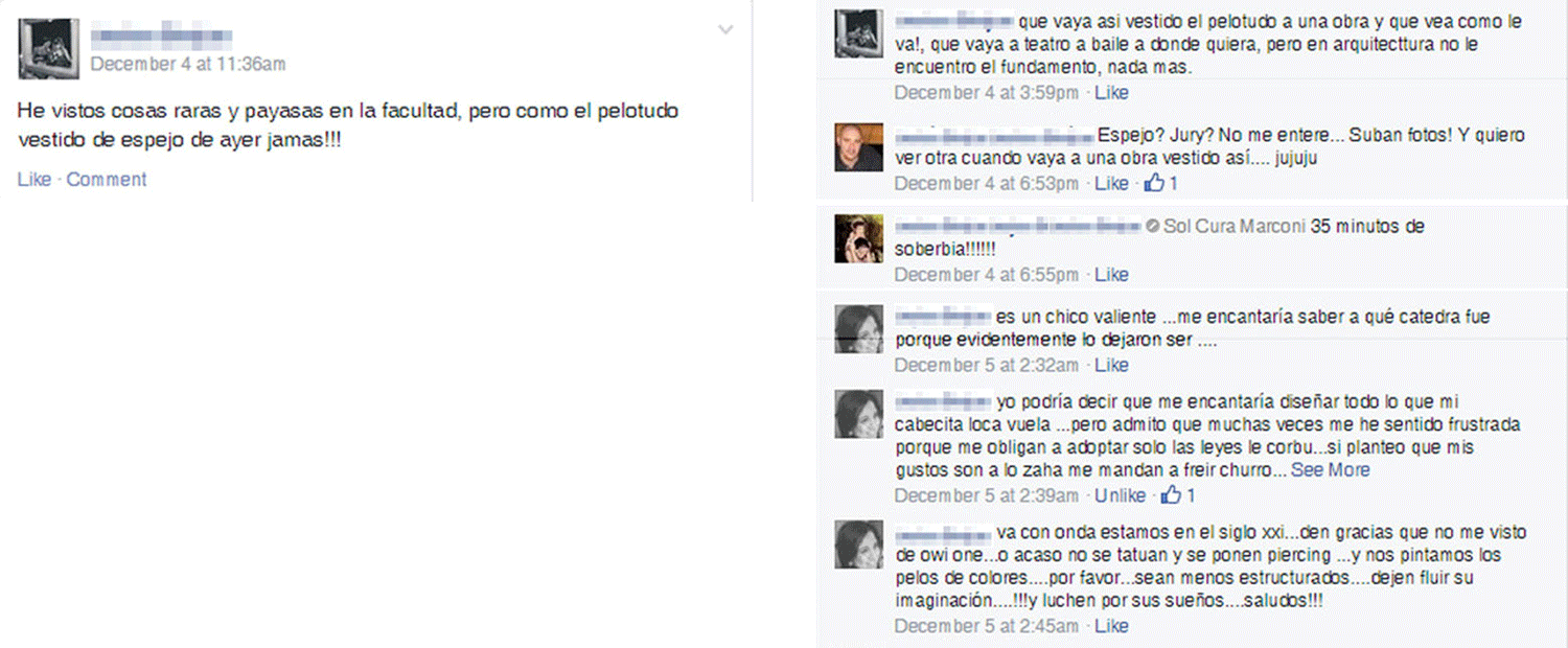 2015, Capturas de pantalla de debate estudiantil en la red Facebook.