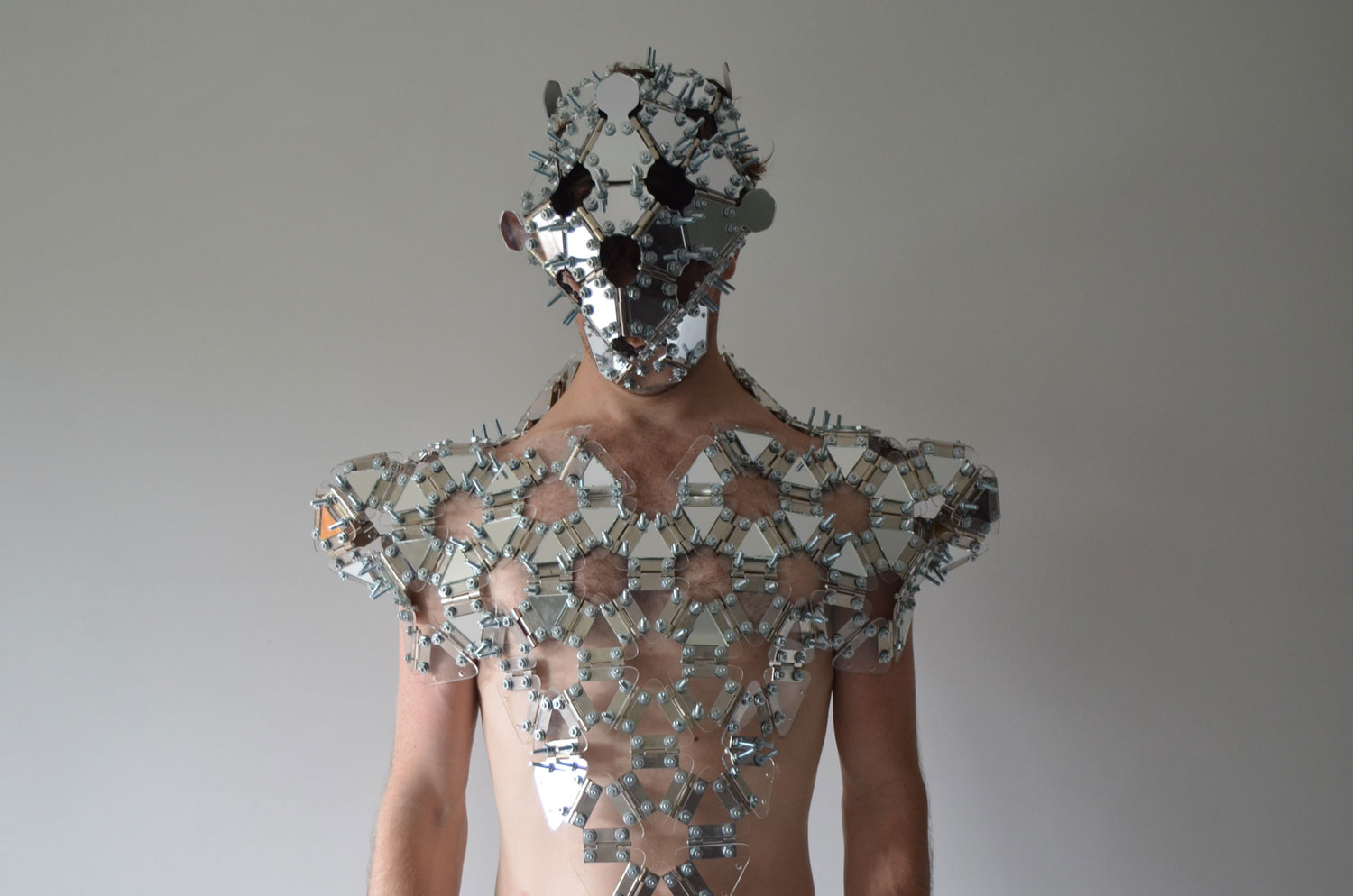 Fue concebido como maqueta de proyecto arquitectónico, modificada para adaptarse al cuerpo. Lo porté mientras expuse ante jurados el proyecto de arquitectura con el cual me recibí. No guardo fotos de ese momento, pero sí capturas de pantalla de una ciber-batalla que generó. Cientos de mensajes de estudiantes universitarios debatiendo sobre la pertinencia/estupidez de una performance que no fui consciente de estar haciendo.
